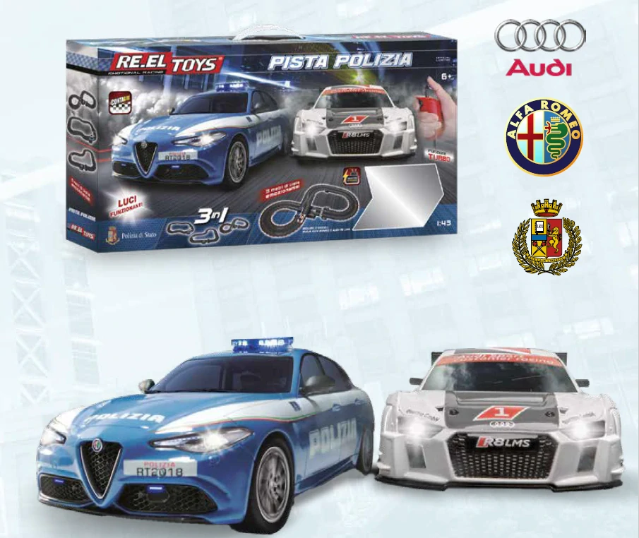 Představujeme autodráhu s vozy Alfa Romeo Giulia Poliza - Audi R8 LMS. 3 možnosti sestavení dráhy, 2 druhy autíček a spousta zábavy.