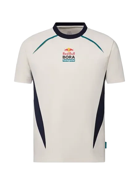 Bavlněné tričko cyklistického týmu Red Bull Bora Hansgrohe s malým 3D logem na hrudi. Tmavě bílá barva doplněná logem a motivy Urban.