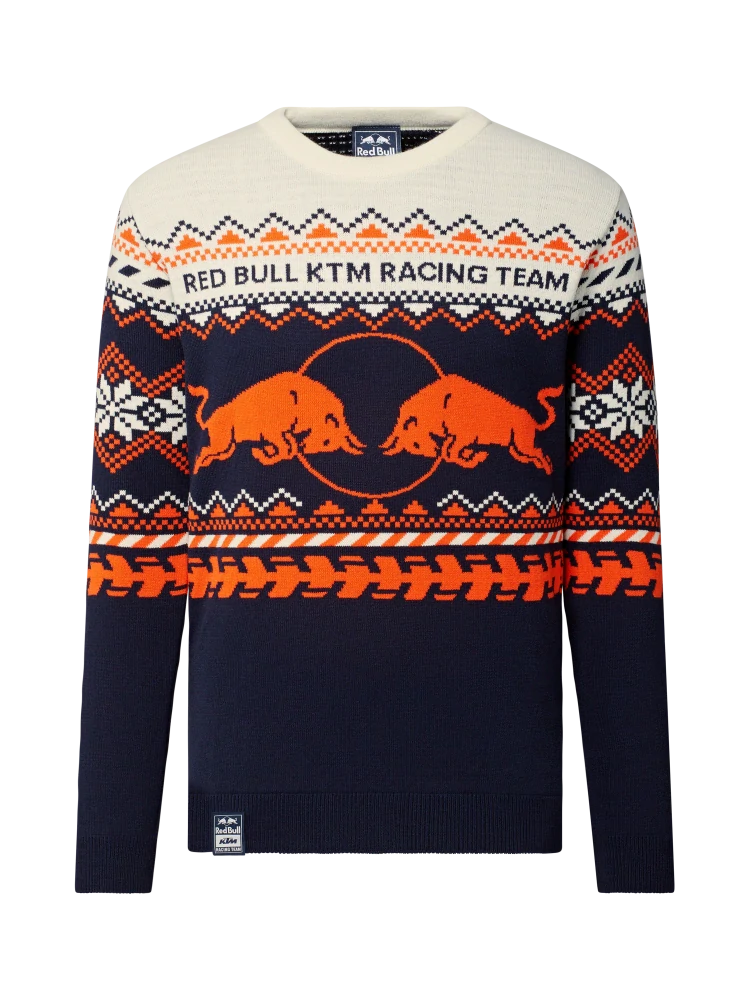 Zimní svetr KTM Red Bull Racing pro všechny fanoušky motocyklů KTM. Zimní svetr KTM Red Bull Racing doplněný vánočními vzory a velkým logem Red Bull. Luxusní provedení, pohodlný na nošení. Perfektní vánoční dárek pro fanoušky MotoGP a především týmu Red Bull KTM.